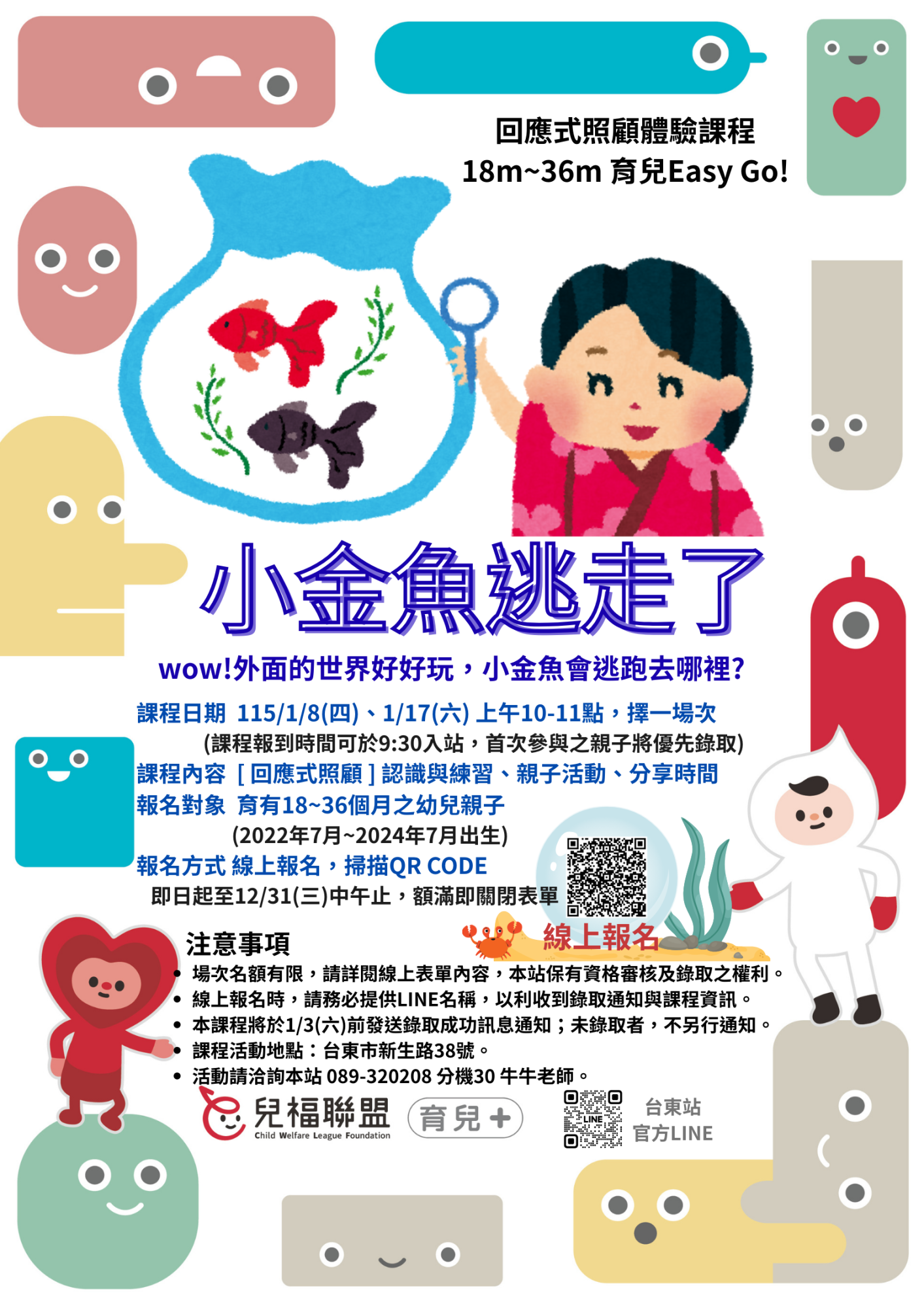 報名詳情,請至育兒+ 台東站官方LINE參閱