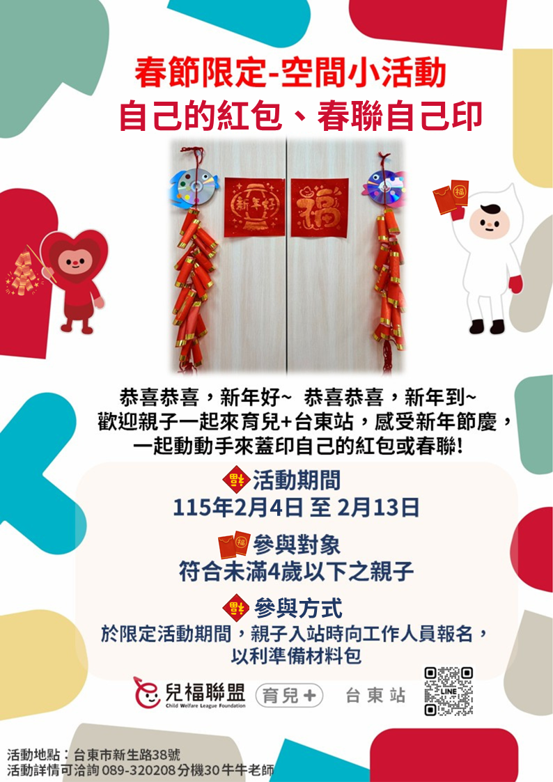 歡迎親子一起來育兒+台東站,感受新年節慶,一起動動手來蓋印自己的紅包或春聯!
