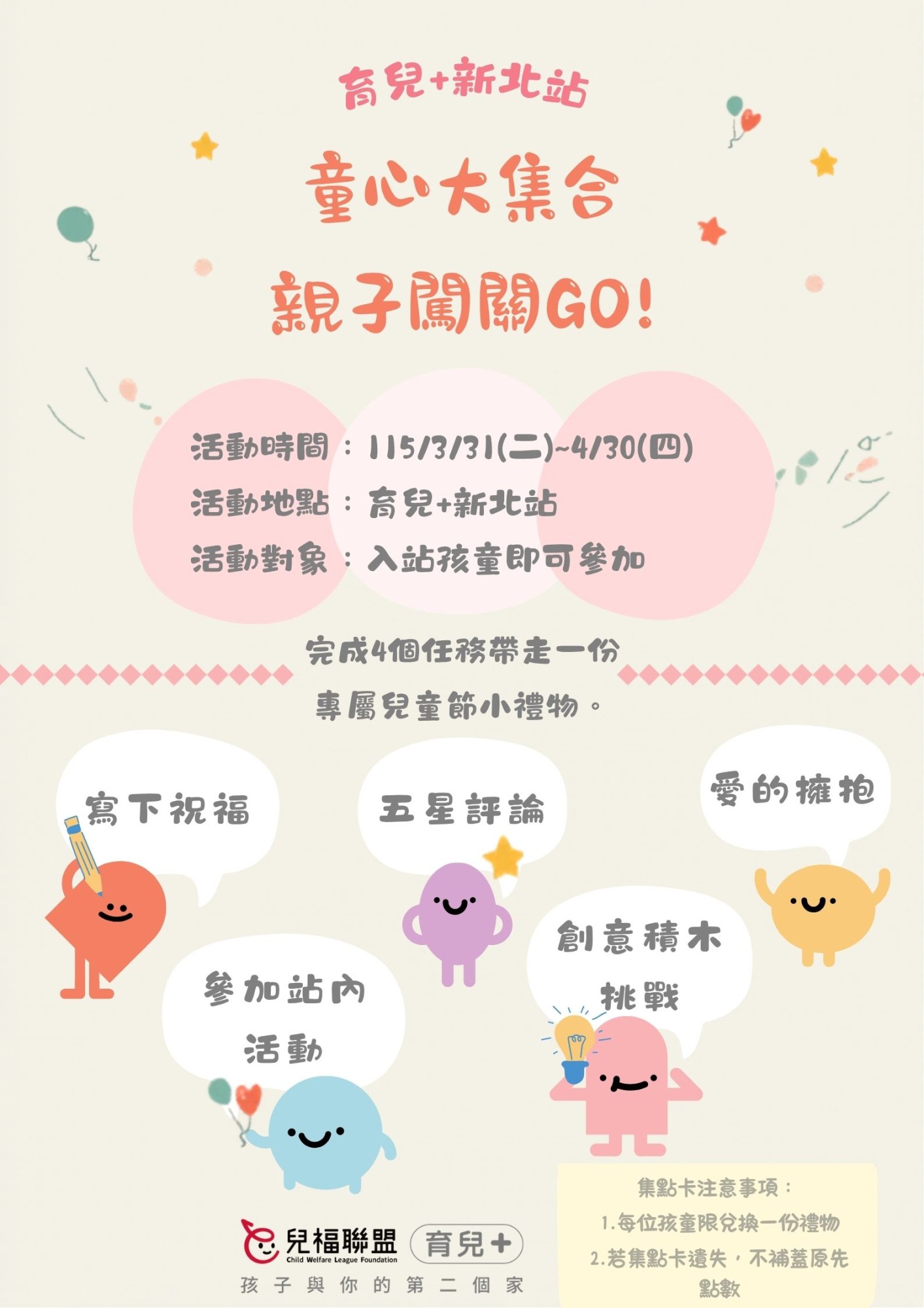 所有0-4歲入站孩童即可參與,四歲以上一同入站之手足也可闖關集點。