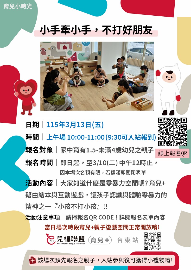 報名詳情,請至育兒+ 台東站官方LINE參閱
