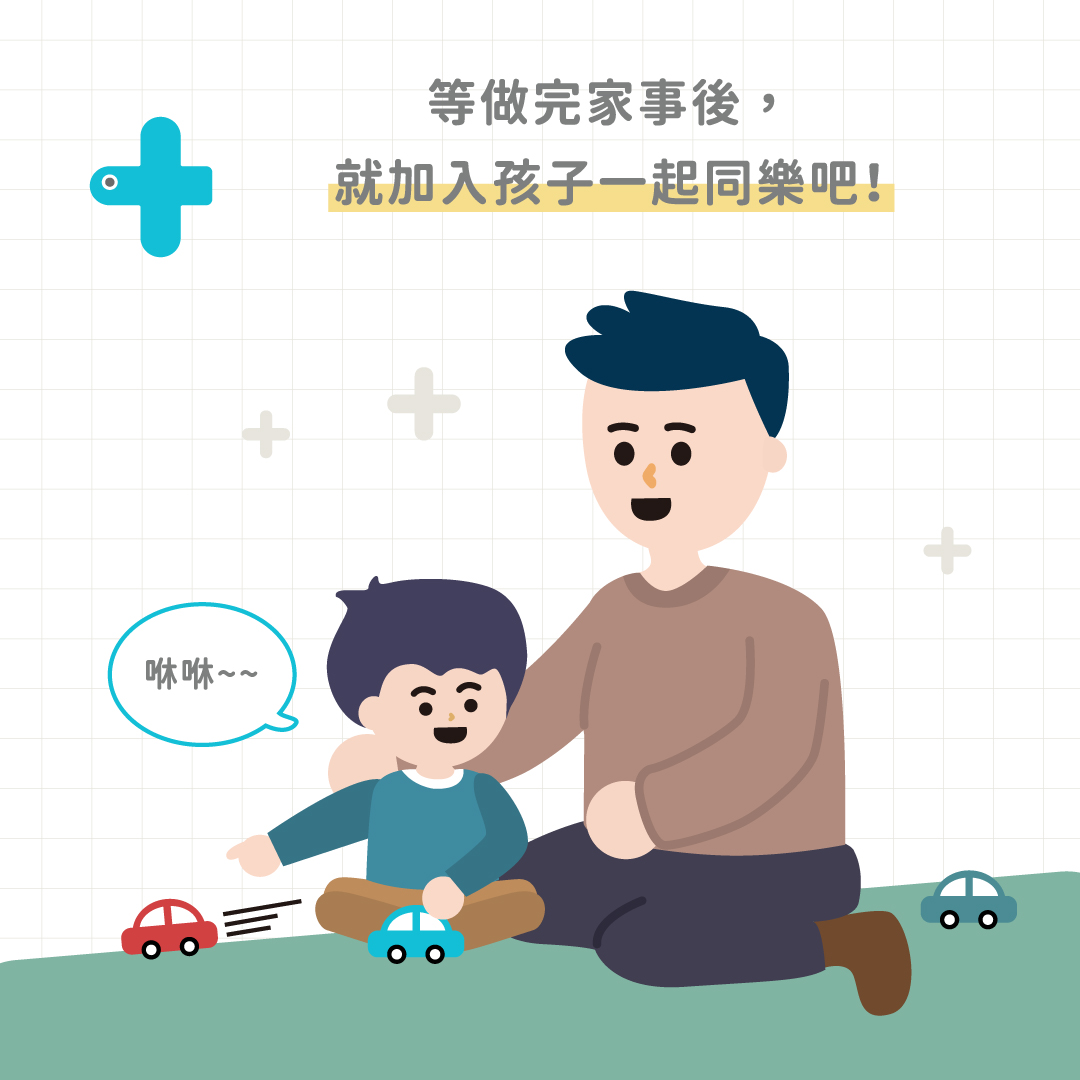 當手邊正好有堆積如山的家事要做,或是在工作了一整天、拖著疲憊的身體回到家中時,真的只想好好坐下休息,但這時耳邊卻傳來孩子充滿活力的聲音:「爸爸/媽媽 陪我玩~」